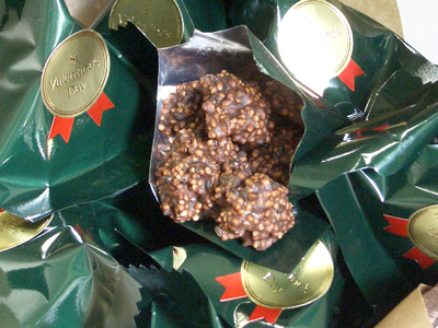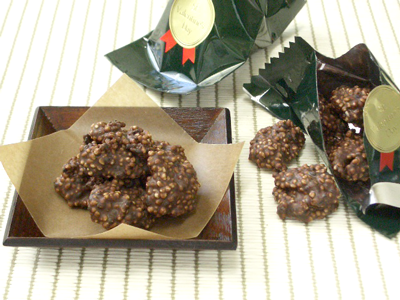 サクサクした焼道明寺の食感と香ばしい胡麻の風味がうれしい和風クランチチョコ