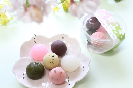 新粉団子製(プレーン・抹茶・さくら)あん団子製(小豆・白みそ・さくら)